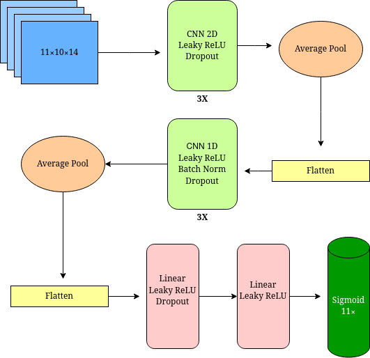 I leveraged the winning submission from a few years ago and built a deep CNN, using a similar architecture as the authors described. A high-level model diagram is below: